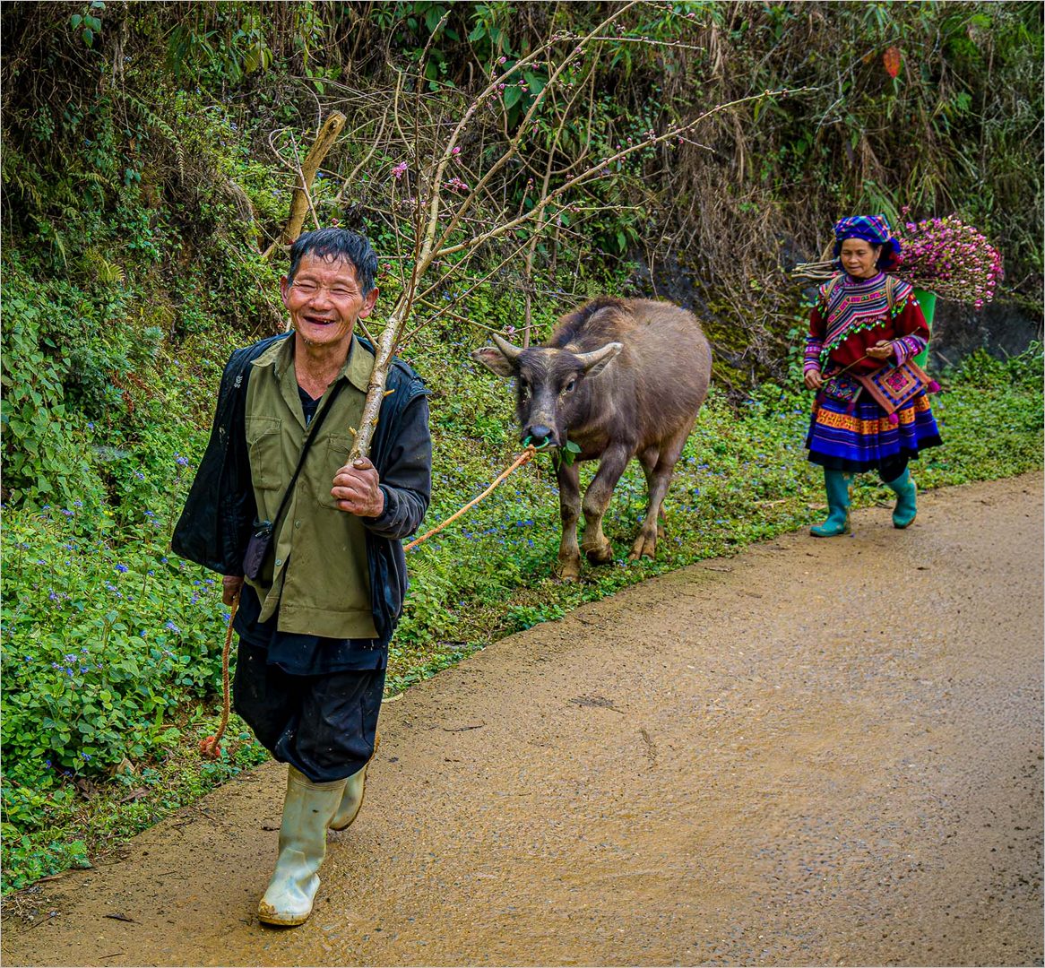 What a cheery chappy! The lady's colours and flowers are wonderful too.