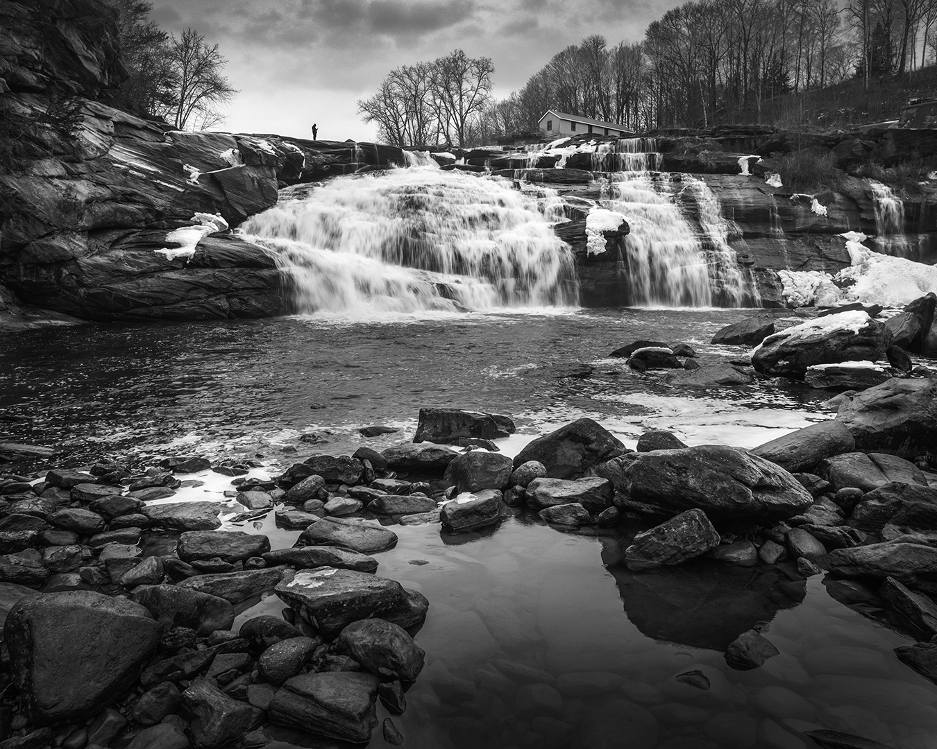 I prefer the top part! What would it look like if it was cropped just above the top of the still pool which does nothing for me I'm afraid! I'd have liked to have seen a bit more of the interesting sky too. A lovely picture nonetheless and it's helped by the figure.